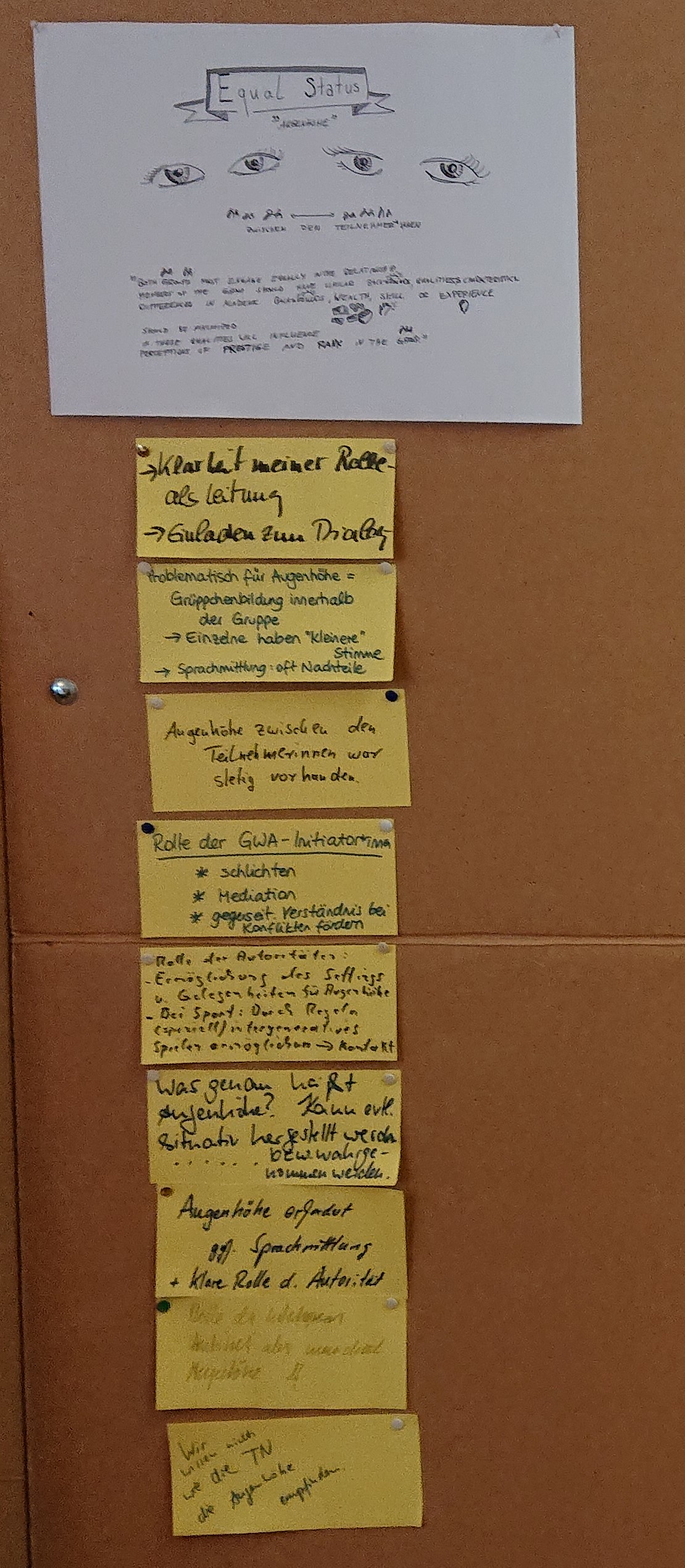 Im Folgenden findet ihr /finden Sie Ihre und eure Rückmeldungen und gesammelten Erfahrungen, die im Austauschtreffen am 19. Dezember zusammen getragen wurden. Sie richten sich nach den vier Kriterien idealtypischer Kontaktmaßnahmen Gordon Allports und werden in die Weiterentwicklung des Modellvorgehens einfließen.